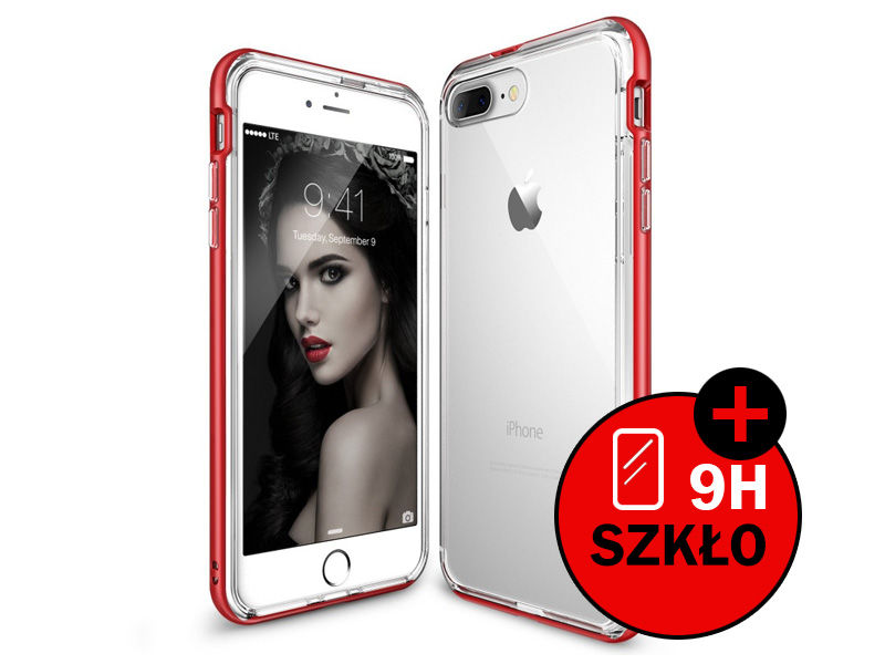 Etui Ringke Fusion Frame iPhone 7 Plus Blaze Red + Szkło - Czerwony