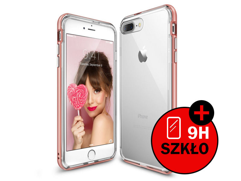 Etui Ringke Fusion Frame iPhone 7 Plus Rose Gold + Szkło - Różowy