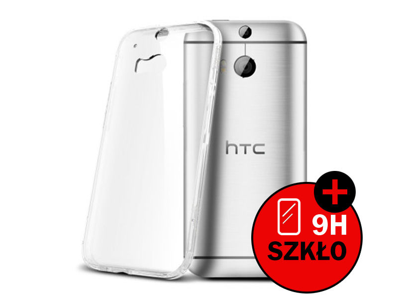 Etui silikonowe crystal 0.3mm guma do HTC Desire M8 + Szkło hartowane